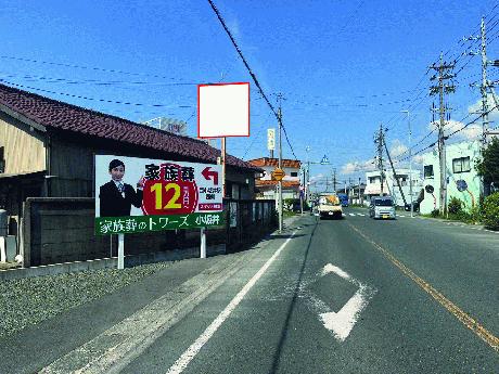 | 備考 | @縦 1800 × 横 1800 mm 付近に小学校や大きな工場があり通勤車など交通量は多い場所です。 踏切手前にあるので、目に留まりやすい物件です |